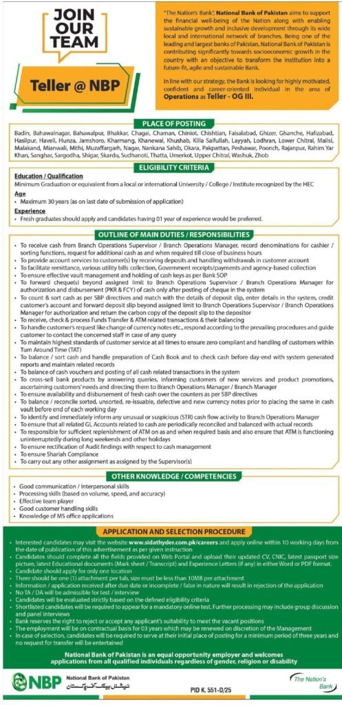 The National Bank of Pakistan (NBP) is one of the largest and most trusted banks in the country, offering a wide range of career opportunities. If you’re looking for a stable and rewarding job in banking, the Teller Jobs at National Bank 2025 could be your perfect opportunity.